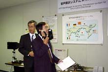 写真は、日本語の音声に対する英語への変換及び同時発生のデモをやっているところです。開発を初めてから15年だそうですが、ホテルのフロントとの会話を想定しているそうです。